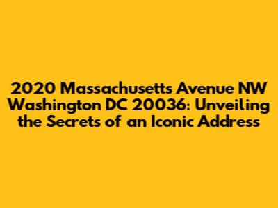 Hey guys! Ever heard of 2020 Massachusetts Avenue NW, Washington DC 20036? If not, buckle up because we’re about to dive deep into the history, significance, and allure of this iconic address. This isn't just a building; it's a landmark steeped in stories, power, and prestige. Whether you're a history buff, a real estate enthusiast, or simply curious about the District's hidden gems, this guide is your ultimate resource.