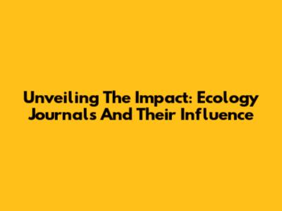 Unveiling The Impact: Ecology Journals And Their Influence