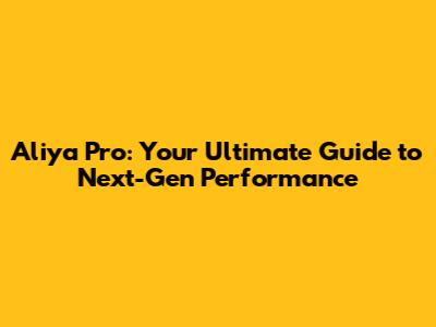 Aliya Pro: Your Ultimate Guide To Next-Gen Performance