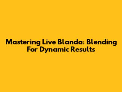 Mastering Live Blanda: Blending For Dynamic Results