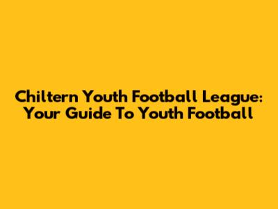 Chiltern Youth Football League: Your Guide To Youth Football