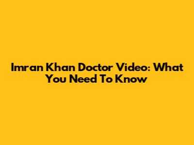 Imran Khan Doctor Video: What You Need To Know