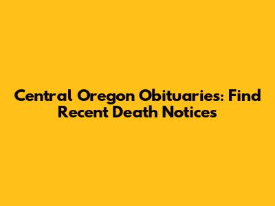 Central Oregon Obituaries: Find Recent Death Notices