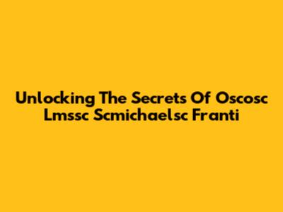 Unlocking The Secrets Of Oscosc Lmssc Scmichaelsc Franti