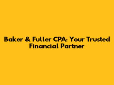 Baker & Fuller CPA: Your Trusted Financial Partner