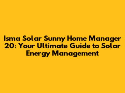 Hey guys! Are you ready to dive into the world of solar energy and discover how you can take control of your home's power consumption? Well, buckle up, because we're about to explore the Isma Solar Sunny Home Manager 20, a game-changer in the realm of renewable energy. This comprehensive guide will walk you through everything you need to know about this amazing device, from its features and benefits to how it can revolutionize your energy usage. Let's get started!