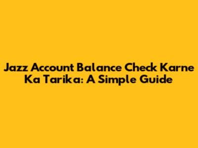 Jazz Account Balance Check Karne Ka Tarika: Easy Guide