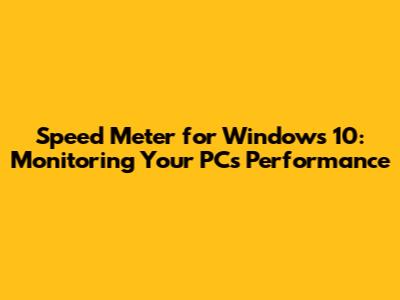 Monitor Your PC's Performance: Speed Meter For Windows 10