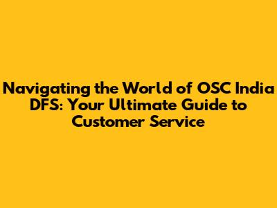 Navigating the World of OSC India DFS: Your Ultimate Guide to Customer Service