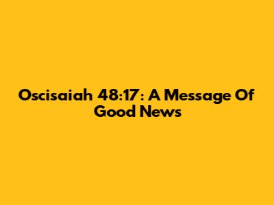 Oscisaiah 48:17: A Message Of Good News