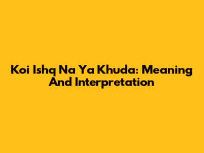 Koi Ishq Na Ya Khuda: Meaning And Interpretation