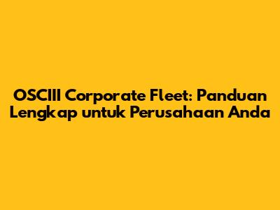 Memahami Pengertian OSCIII Corporate Fleet