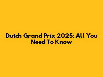 Dutch Grand Prix 2025: All You Need To Know