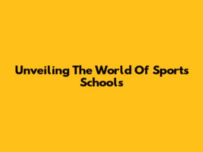 Unveiling The World Of Sports Schools