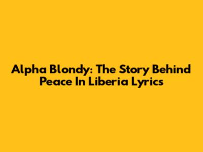 Alpha Blondy: The Story Behind 'Peace In Liberia' Lyrics