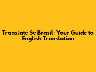 Hey guys! Ever stumbled upon "Se Brasil" and wondered what it means? Well, you're in the right place! This guide is all about helping you understand the English translation of "Se Brasil," a phrase that often pops up in various contexts. We'll break down the nuances, offer some examples, and give you the tools to confidently navigate its meaning. So, buckle up, and let's dive into the fascinating world of language and translation! Getting the right translation is crucial, and it's not always a straightforward process. The meaning can shift depending on the context, like a chameleon changing colors. That's why we're going to explore different scenarios where you might encounter "Se Brasil" and how the English translation changes accordingly. Ready to become a translation pro? Let's get started!