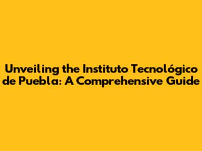 Unveiling The Instituto Tecnológico De Puebla: A Comprehensive Guide