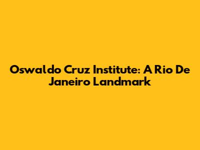 Oswaldo Cruz Institute: A Rio De Janeiro Landmark